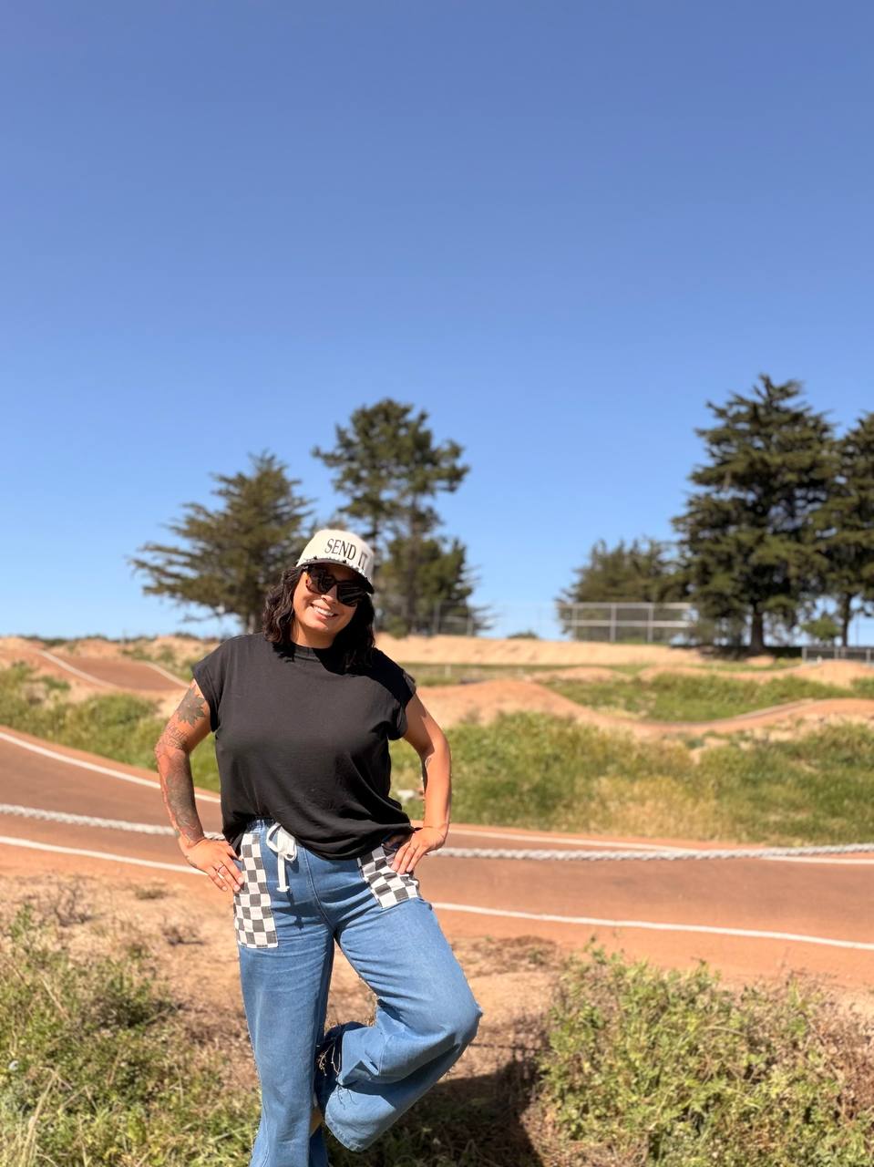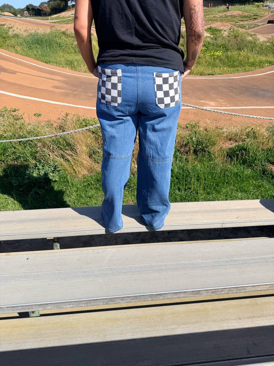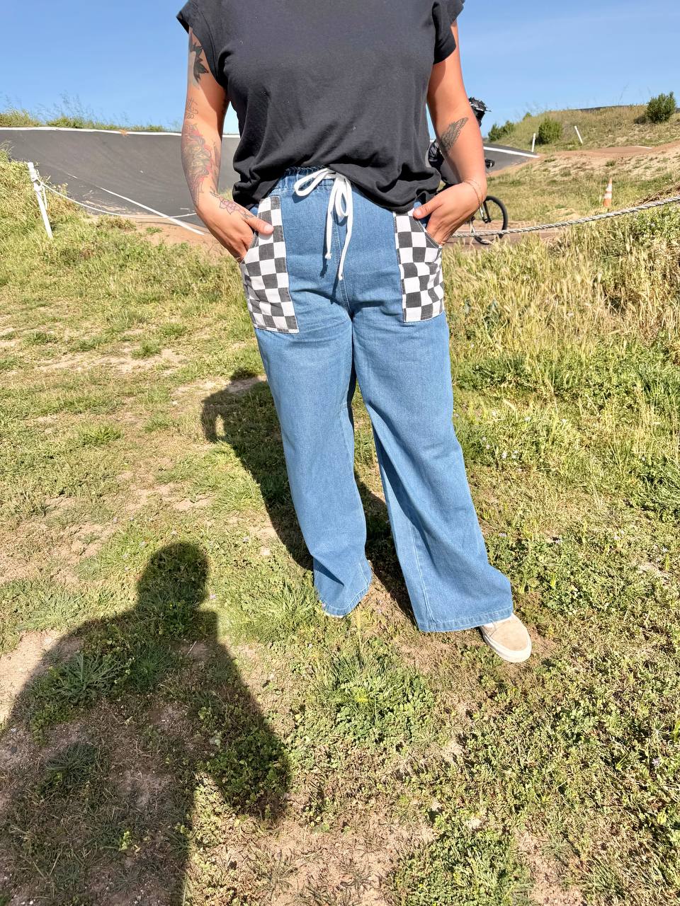 Checkered pocket flare pants that turn every step into a statement.