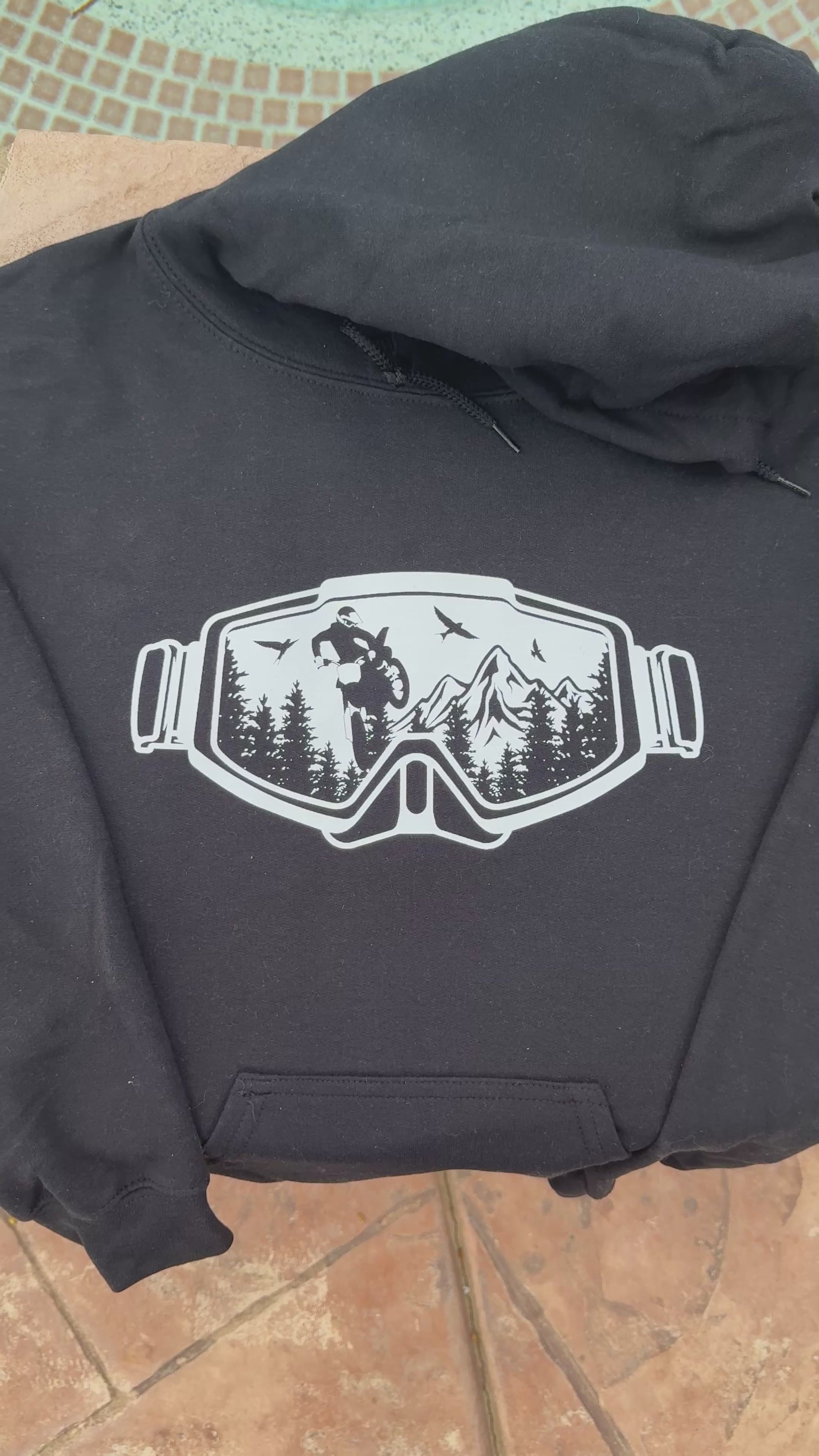 Dress in style on and off the trackz and trailz with our moto goggle unisex hoodie. Available in youth and adult sizing.